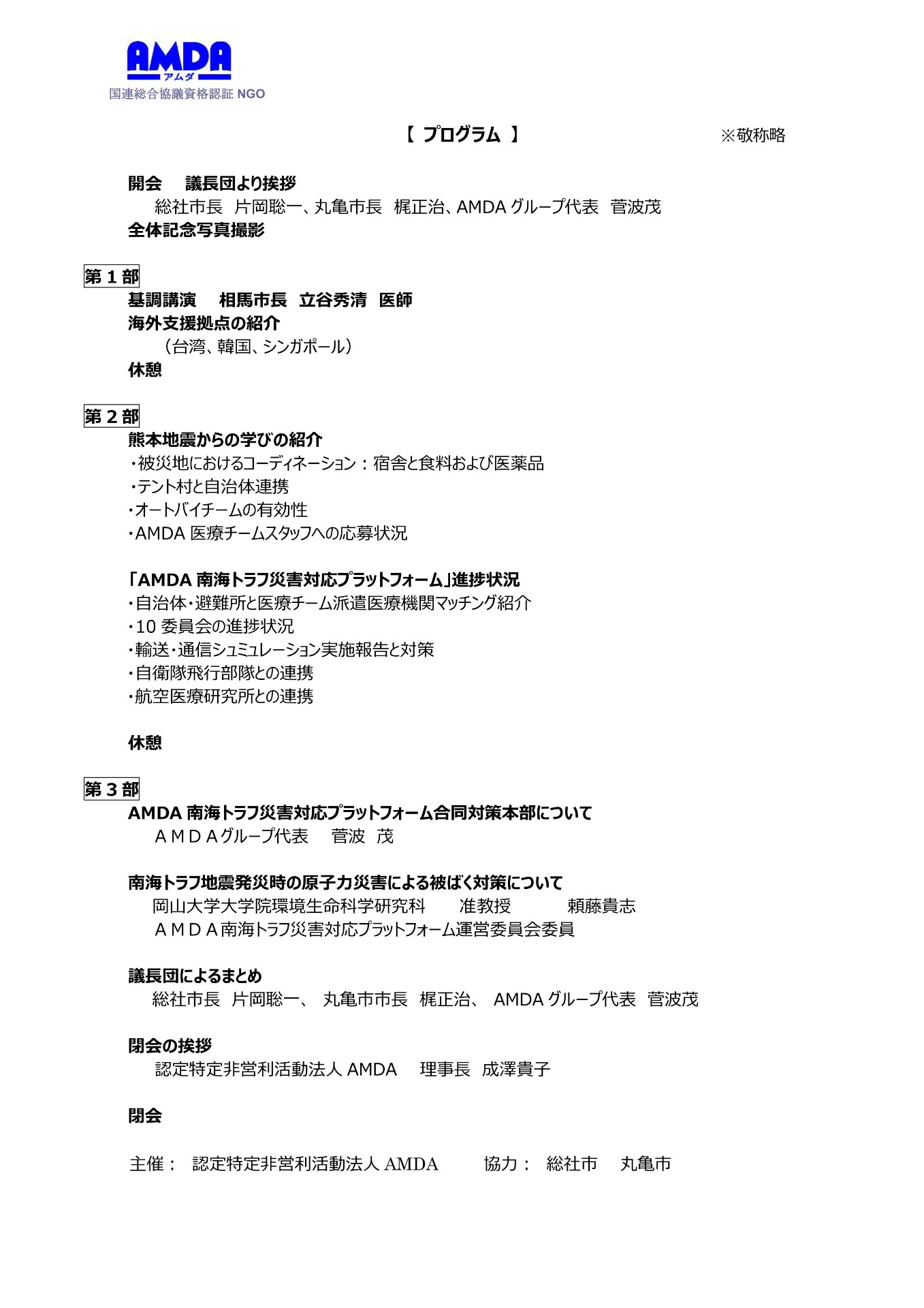第3部では、菅波代表がAMDAと総社市、丸亀市、岡山経済同友会による合同対策本部についても言及。